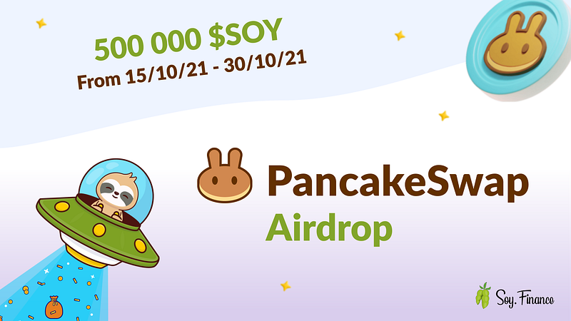 The first phase of the SOY Token Airdrop is specifically for Pancakeswap users. Therefore, to take part in this phase it is necessary to be a Pancakeswap active user between 15/10/21 and 30/10/21.