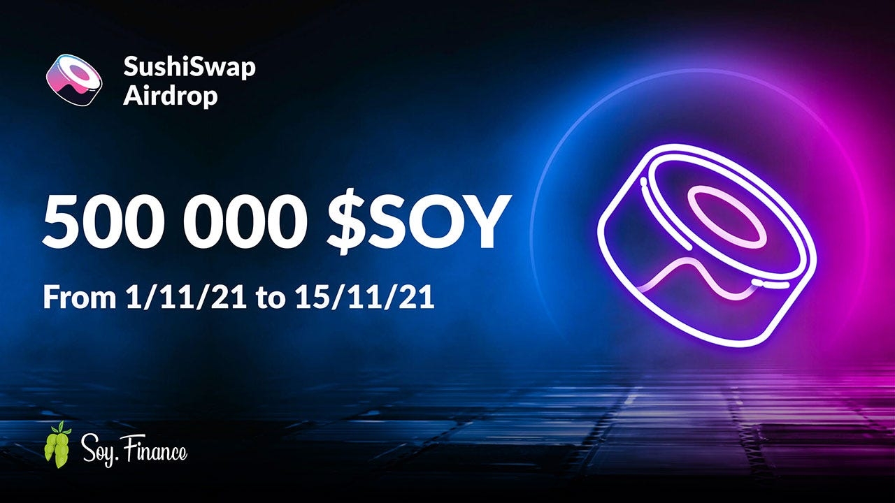 The second phase of the SOY Token Airdrop is specifically for Sushiswap users. Therefore, to take part in this phase it is necessary to be a Sushiswap active user between 1/11/21 and 15/11/21.