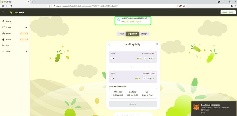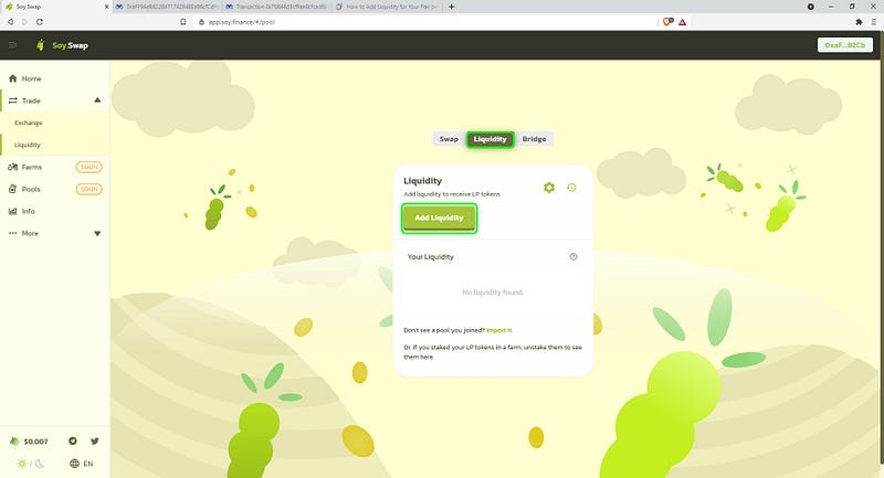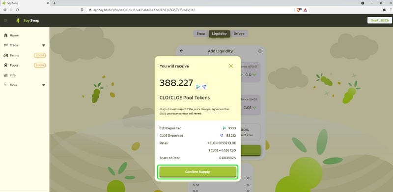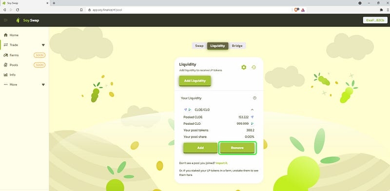 This guide will show you how to provide, add, and remove liquidity to SOY Finance.